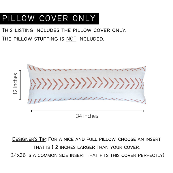 PILLOW COVER ONLY. You will receive only the pillow cover, the insert is not included. We recommend using an insert that is 2 inches larger than your cover. 14x36 is a common size insert that fits this pillow cover perfectly.