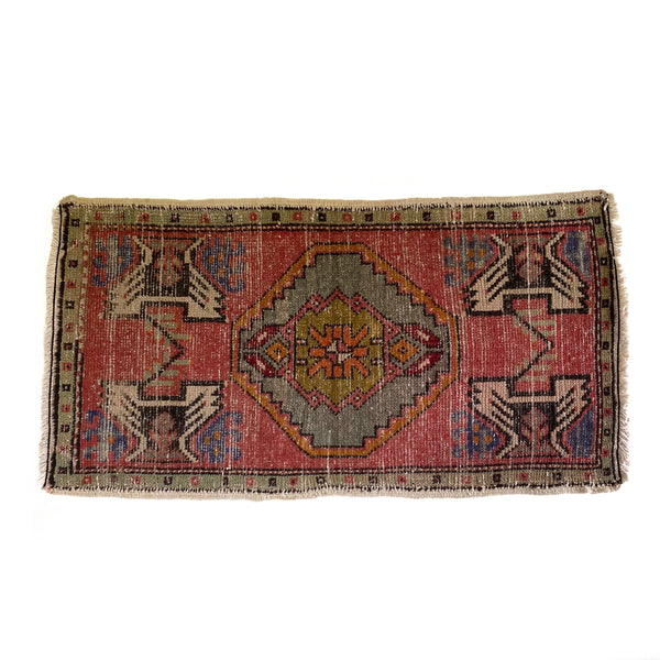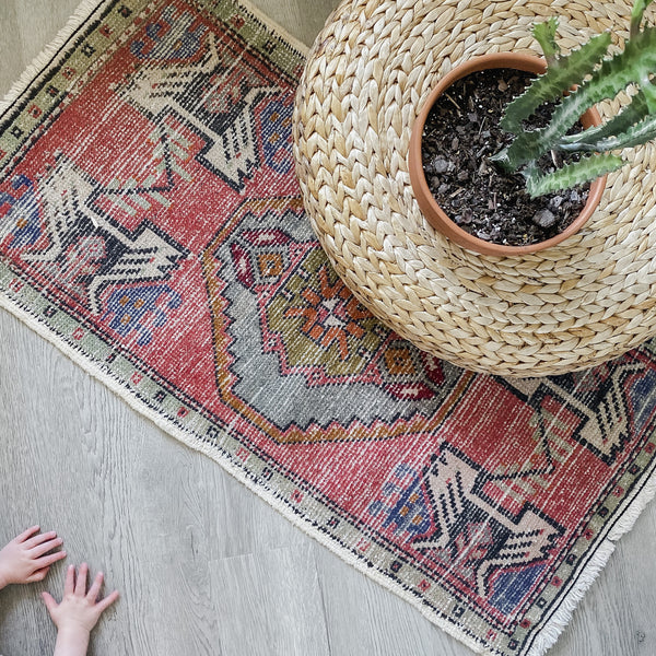 Please note: This is a vintage item, so expect there to be imperfections and signs of wear, which add to the unique character and make this rug truly one-of-a-kind.