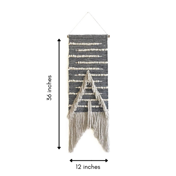 - Dimensions: 12x36 inches (measured from the wooden dowel to the bottom of the fringe)